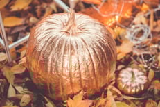 Looking for a little glamour in your home? Gold absolutely POPS when used as an accent against a neutral backdrop. It’s a gorgeous addition that’s extremely easy to complement. In fact, the only colors gold should not be paired with are fire hydrant red, green, or yellow. You may be able to pair gold with a sage green, though do so sparingly. Warm neutrals pair best with these pumpkins.