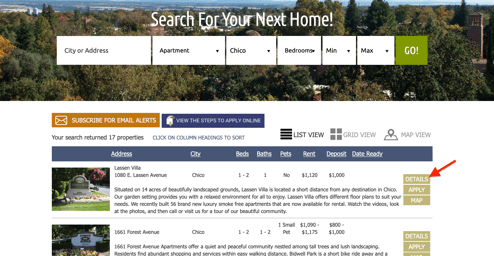Step #2: Scroll down and when you find an apartment that you're interested in, click the DETAILS button.