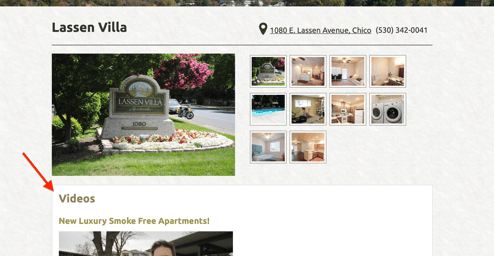 Step #3: Scroll down the page, and if there is an apartment video for the complex you chose then it will be underneath the apartment complex's photos.